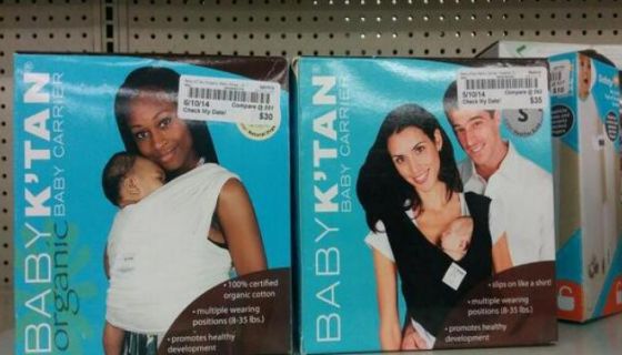 2) The Baby K’tan product featuring the African American woman is from our organic line which should actually be priced higher than the other product displayed.