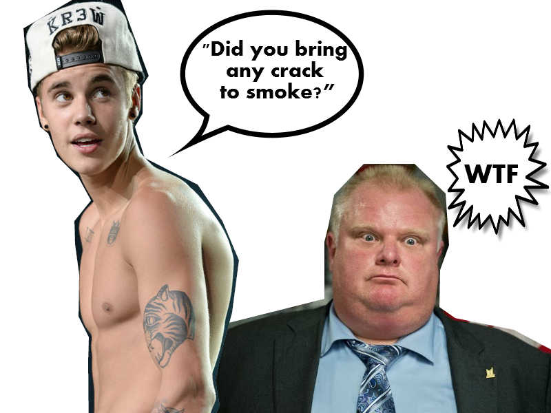 So you remember the Toronto Mayor Rob Ford, the one who was all over the news for crazy crack head and alcoholic behavior a while back. Well according to “The Toronto Star” the Mayor ran into Canadian native Justin Beiber at an exclusive night club on March 15. The two had a brief conversation… ok, […]